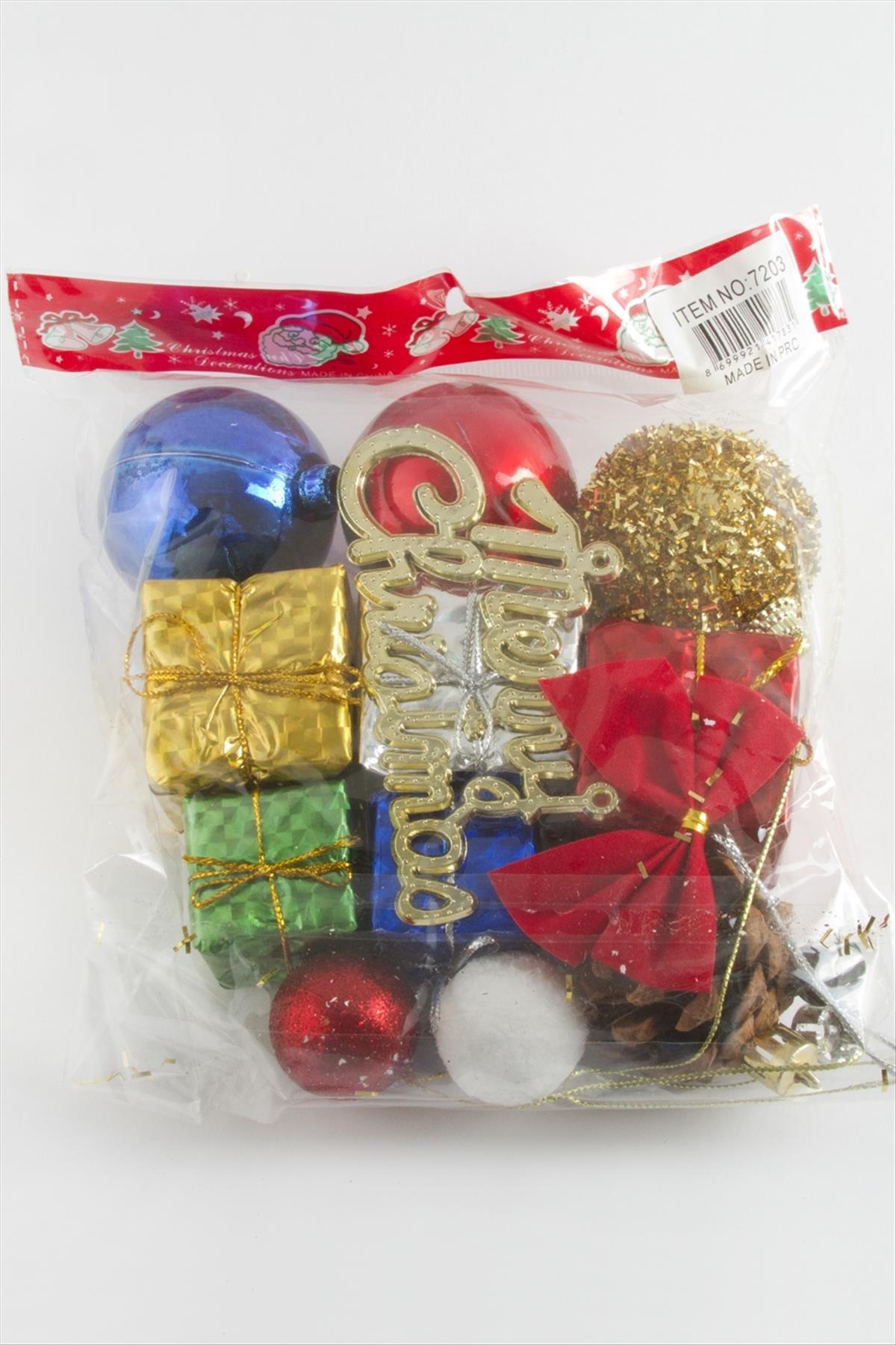 Ağaç Süsü; Ürün sert plastik malzemeden üretilmişdir. Ürün içersinde karışıık yılbaşı süsleri bulunmaktadır. 1 pakette 13 adet yılbaşı süsü gönderilecekdir. Ürün boyu 4 cmdir.