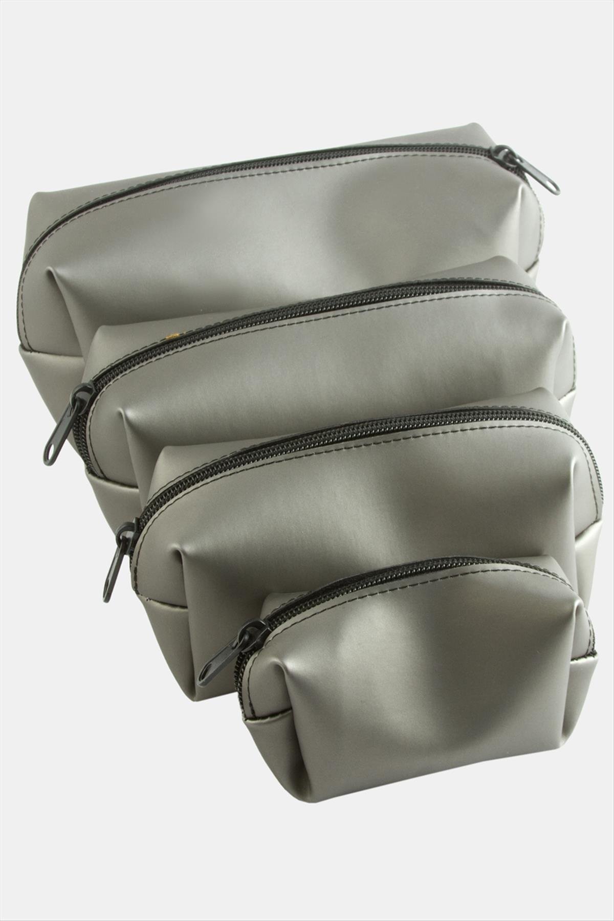 Makyaj Çantası; Ürün malzemesi suni deri ve fermuarlıdır. Fiyat 1 pakette 4 adet çanta için geçerlidir. Çantalar iç içe geçebilmektedir.