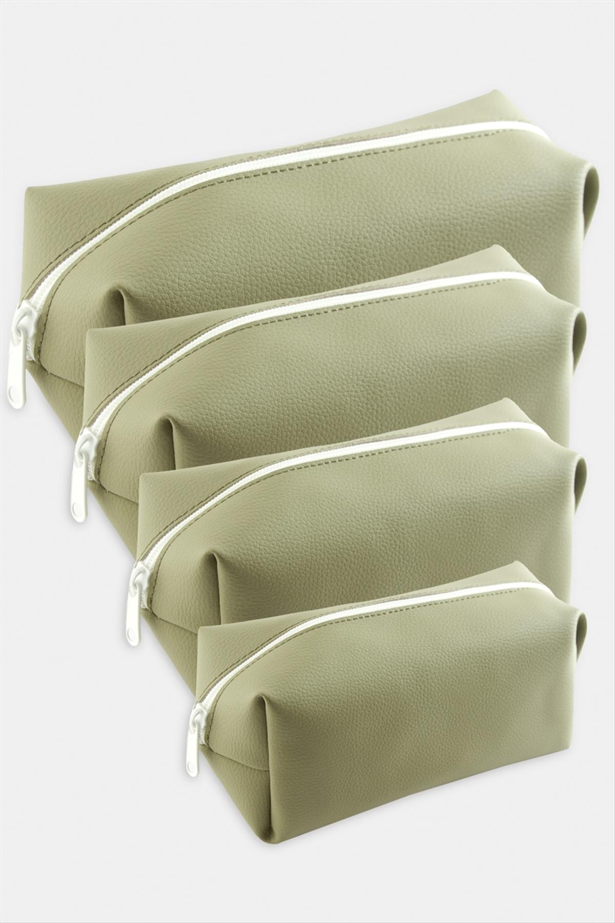 Makyaj Çantası; Ürün malzemesi suni deri ve fermuarlıdır. Fiyat 1 pakette 4 adet çanta için geçerlidir. Çantalar iç içe geçebilmektedir.