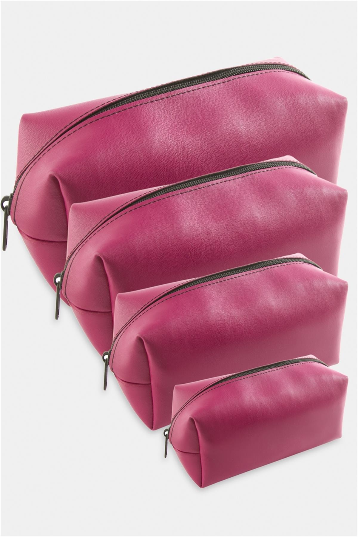 Makyaj Çantası; Ürün malzemesi suni deri ve fermuarlıdır. Fiyat 1 pakette 4 adet çanta için geçerlidir. Çantalar iç içe geçebilmektedir.