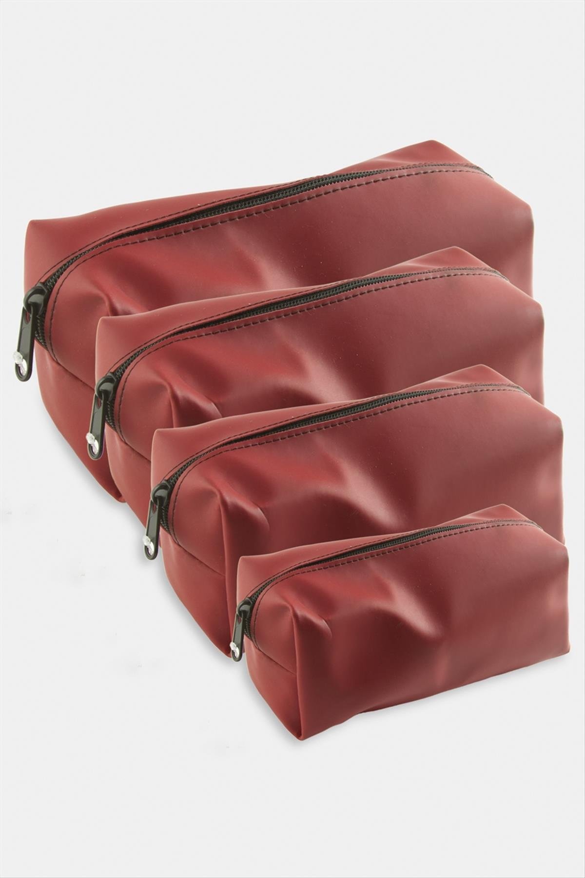 Makyaj Çantası; Ürün malzemesi suni deri ve fermuarlıdır. Fiyat 1 pakette 4 adet çanta için geçerlidir. Çantalar iç içe geçebilmektedir.