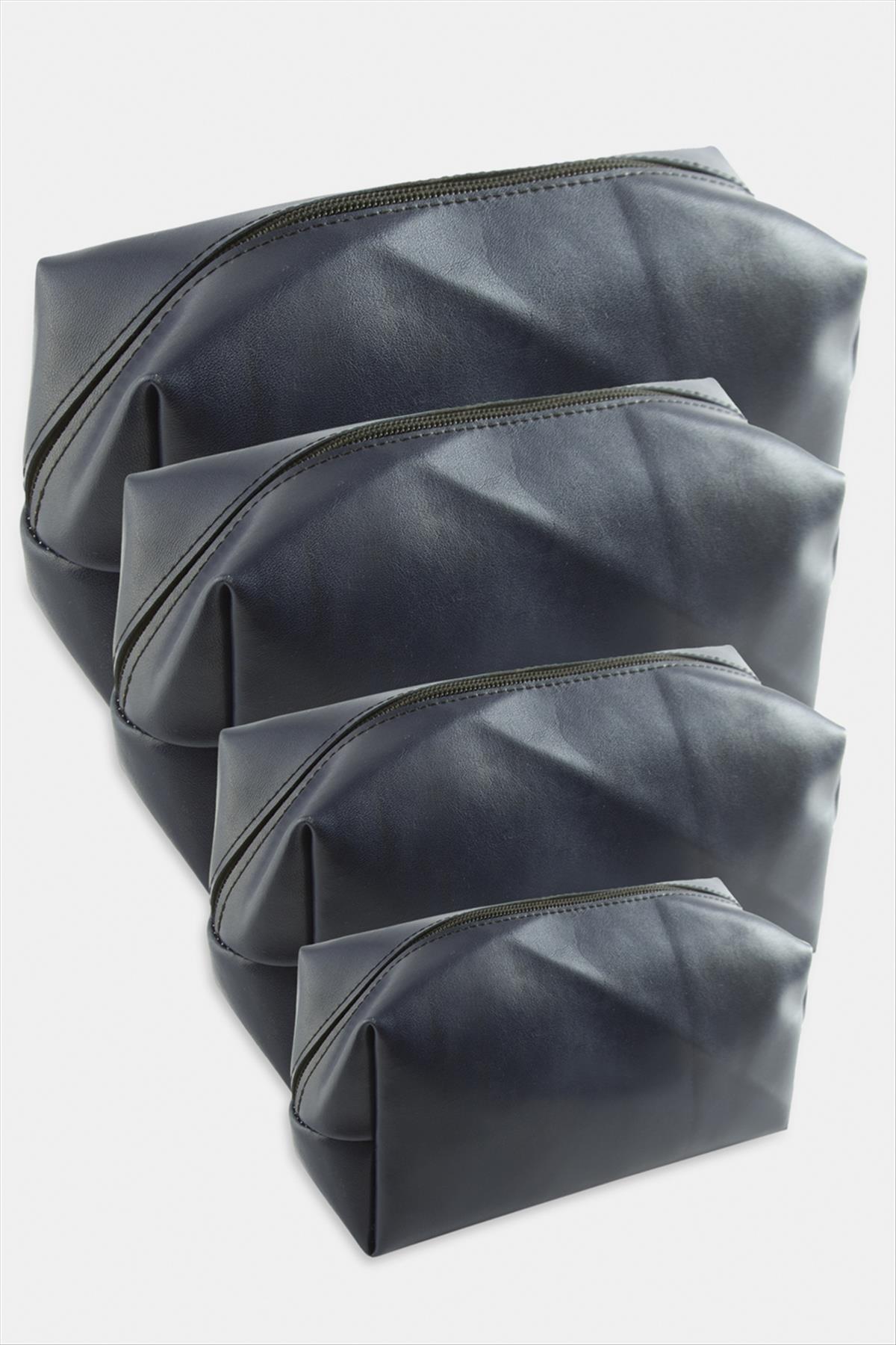 Makyaj Çantası; Ürün malzemesi suni deri ve fermuarlıdır. Fiyat 1 pakette 4 adet çanta için geçerlidir. Çantalar iç içe geçebilmektedir.