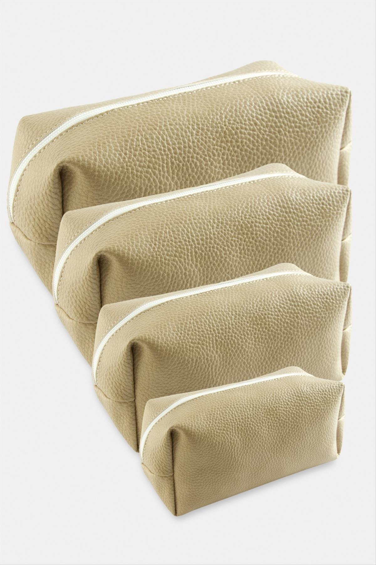 Makyaj Çantası; Ürün malzemesi suni deri ve fermuarlıdır. Fiyat 1 pakette 4 adet çanta için geçerlidir. Çantalar iç içe geçebilmektedir.
