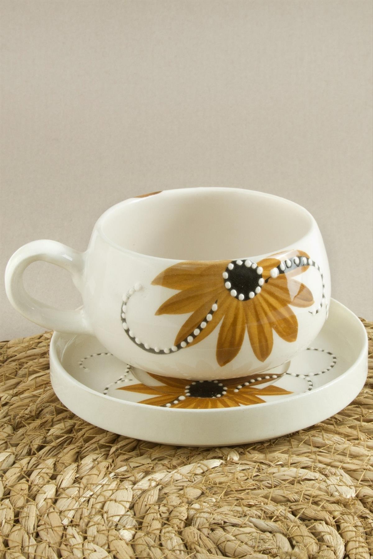 Ayçiçek Desenli Seramik Tabaklı Kupa