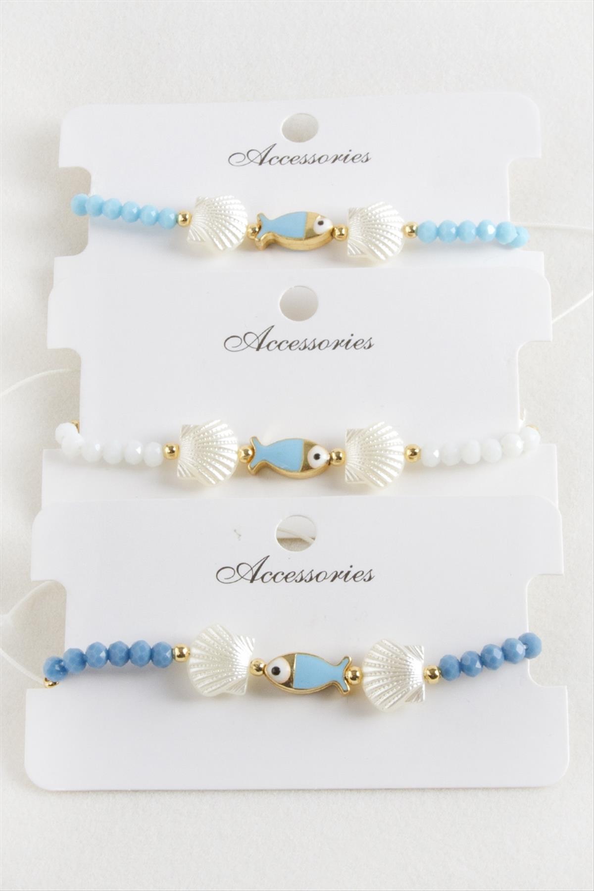 Balık İstiridye İnci Kristal Makrome İp Bileklik