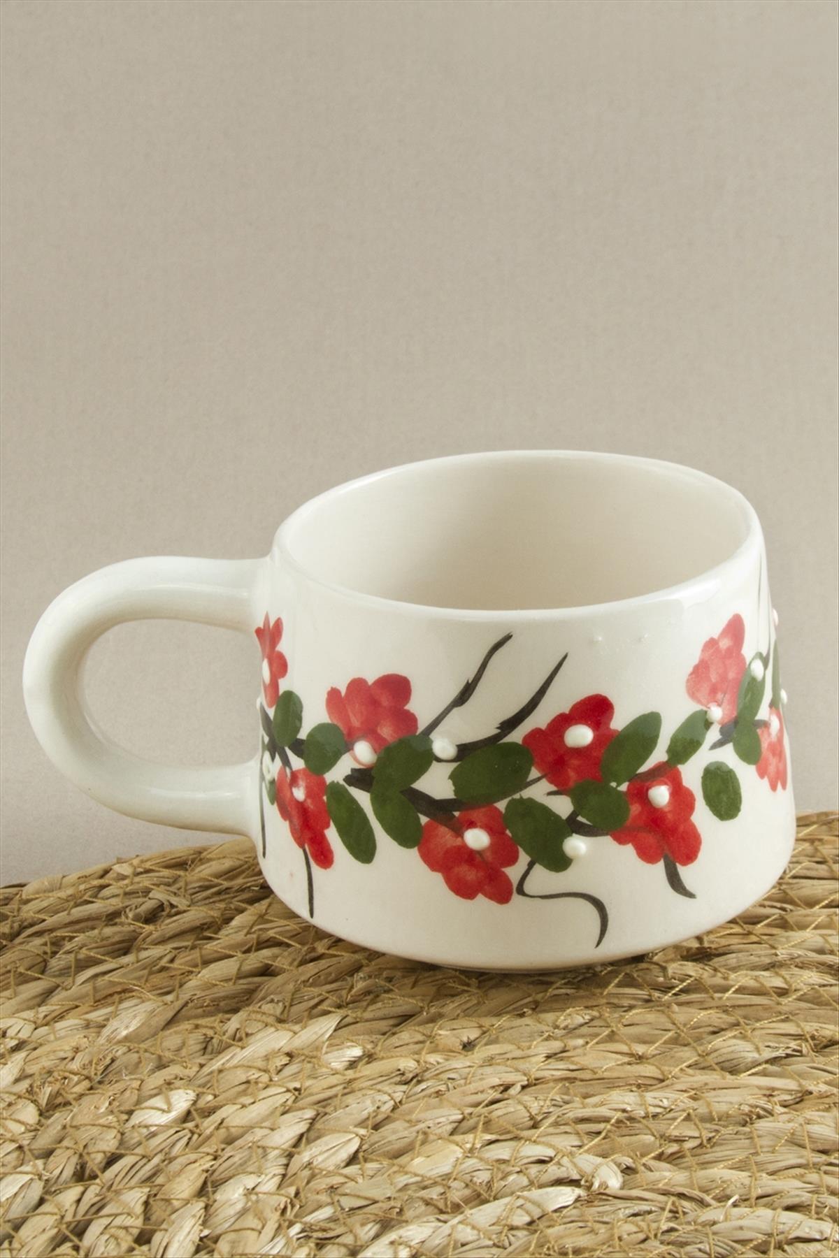 Çiçek Desenli Seramik Kupa