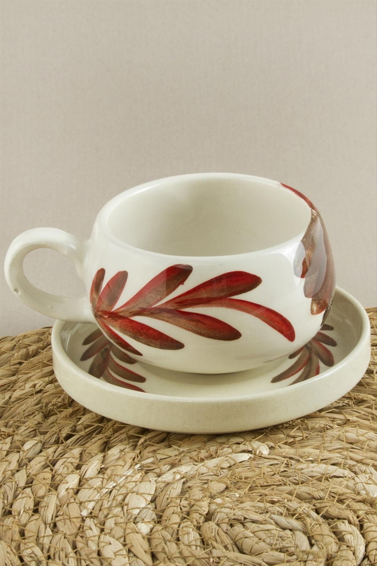 Tabaklı Kupa; Ürün malzemesi seramiktir. Üzerindeki desenler elle çizilip fırınlanmıştır. İçecekleri uzun sür sıcak tutar ve darbelere karşı dayanıklıdır. Ürün kutu içinde tabak ve kupasıyla beraber gönderilecektir. Ürün boyu kupa çapı 8,5 cm ve tabak boyu 12 cmdir.