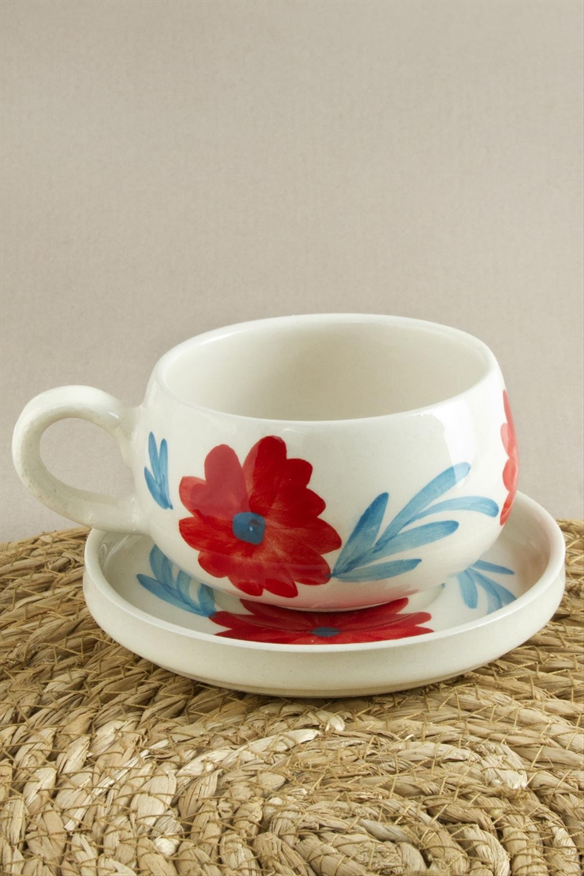 Tabaklı Kupa; Ürün malzemesi seramiktir. Üzerindeki desenler elle çizilip fırınlanmıştır. İçecekleri uzun sür sıcak tutar ve darbelere karşı dayanıklıdır. Ürün kutu içinde tabak ve kupasıyla beraber gönderilecektir. Ürün boyu kupa çapı 8,5 cm ve tabak boyu 12 cmdir.