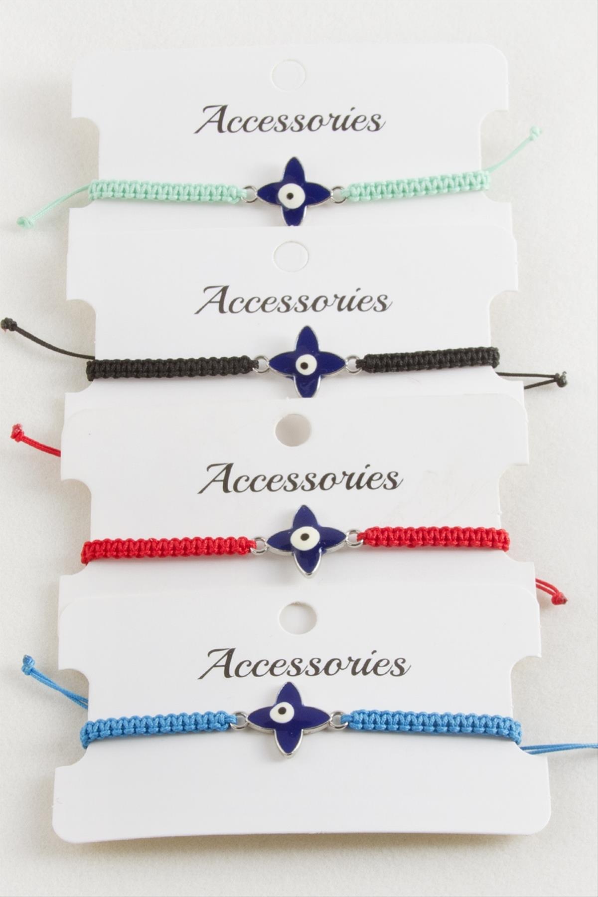 Bileklik; Ürün malzemesi makrome vinlex deri ip ve metaldir. Ürün asansörlüdür. Bileğe göre ayarlamalıdır.