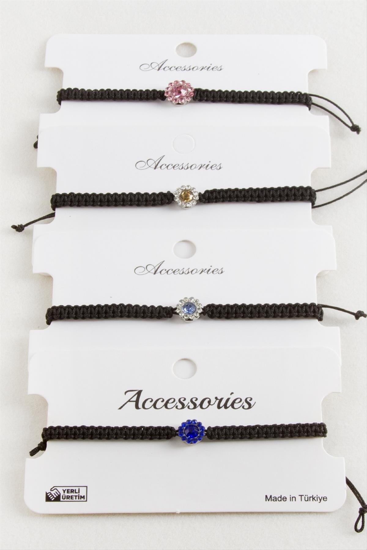 Çiçek Taşlı Makrome Örgülü Bileklik