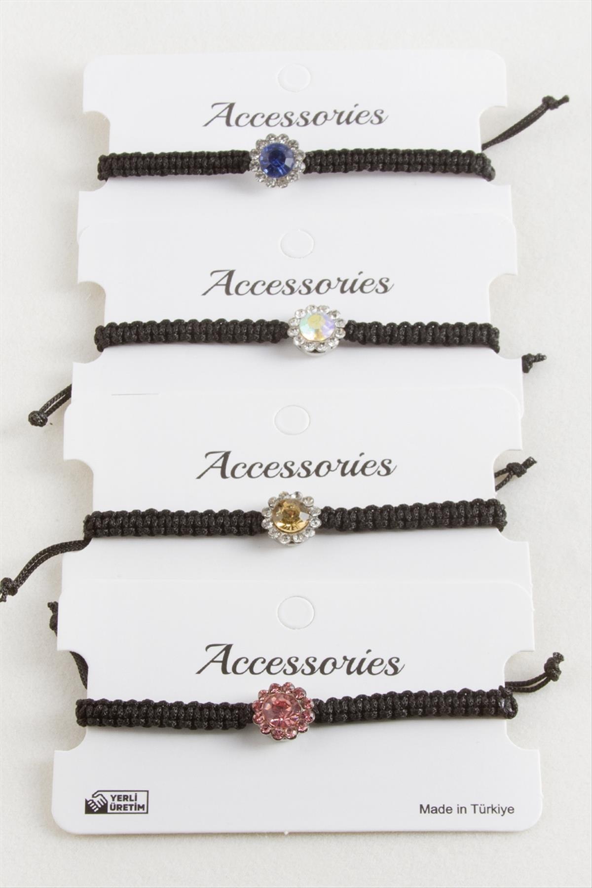 Çiçek Taşlı Makrome Örgülü Bileklik