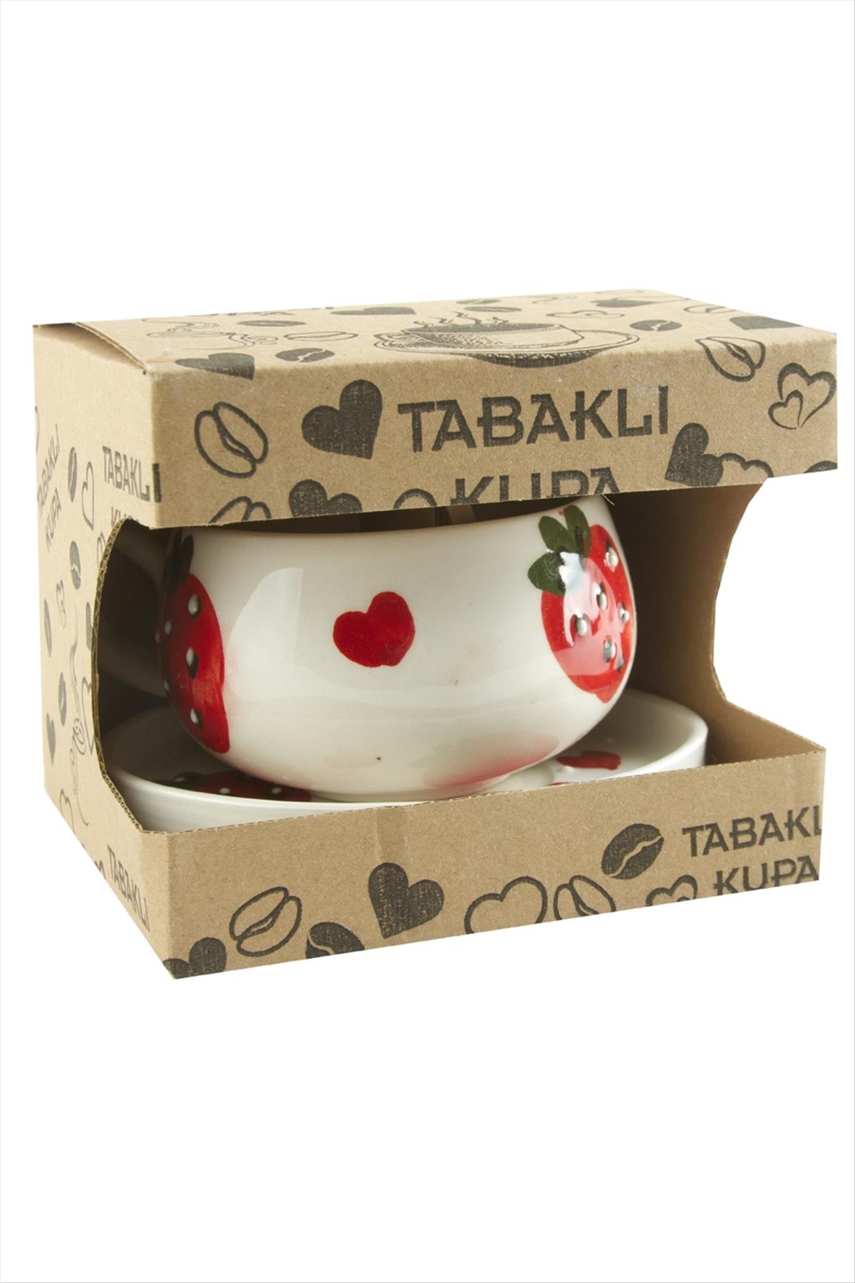 Tabaklı Kupa; Ürün malzemesi seramiktir. Üzerindeki desenler elle çizilip fırınlanmıştır. İçecekleri uzun sür sıcak tutar ve darbelere karşı dayanıklıdır. Ürün kutu içinde tabak ve kupasıyla beraber gönderilecektir. Ürün boyu kupa çapı 8,5 cm ve tabak boyu 12 cmdir.