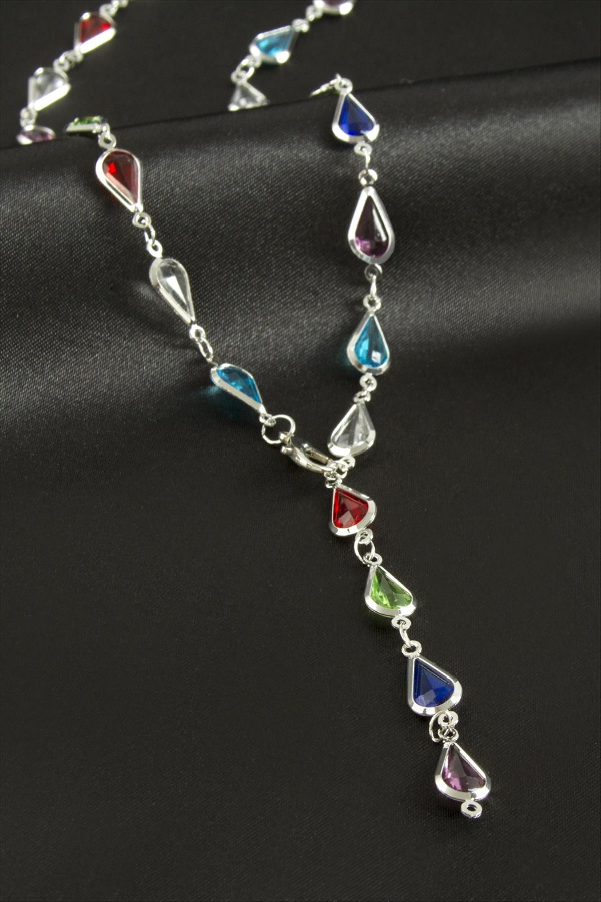 Kolye; Ürün malzemesi zirkon taş ve çeliktir. 1 sınıf kaliteli malzemeden üretilmiştir. Ürün boyu 54 cmdir. Kartlıdır.