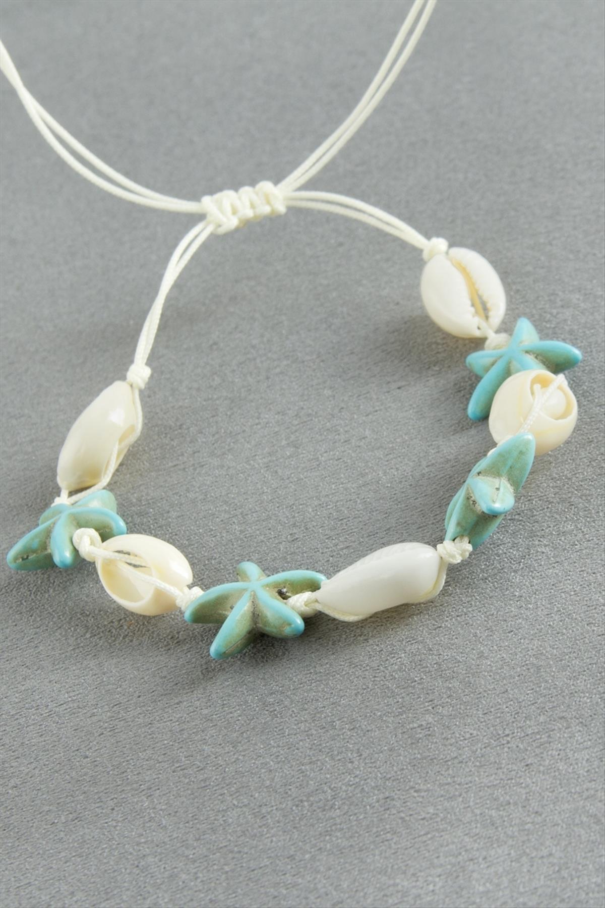 Bileklik; Ürün malzemesi istiridye ve makrome iptir. Ürün arkası asansörlüdür. Bileğe göre ayarlanabilir.