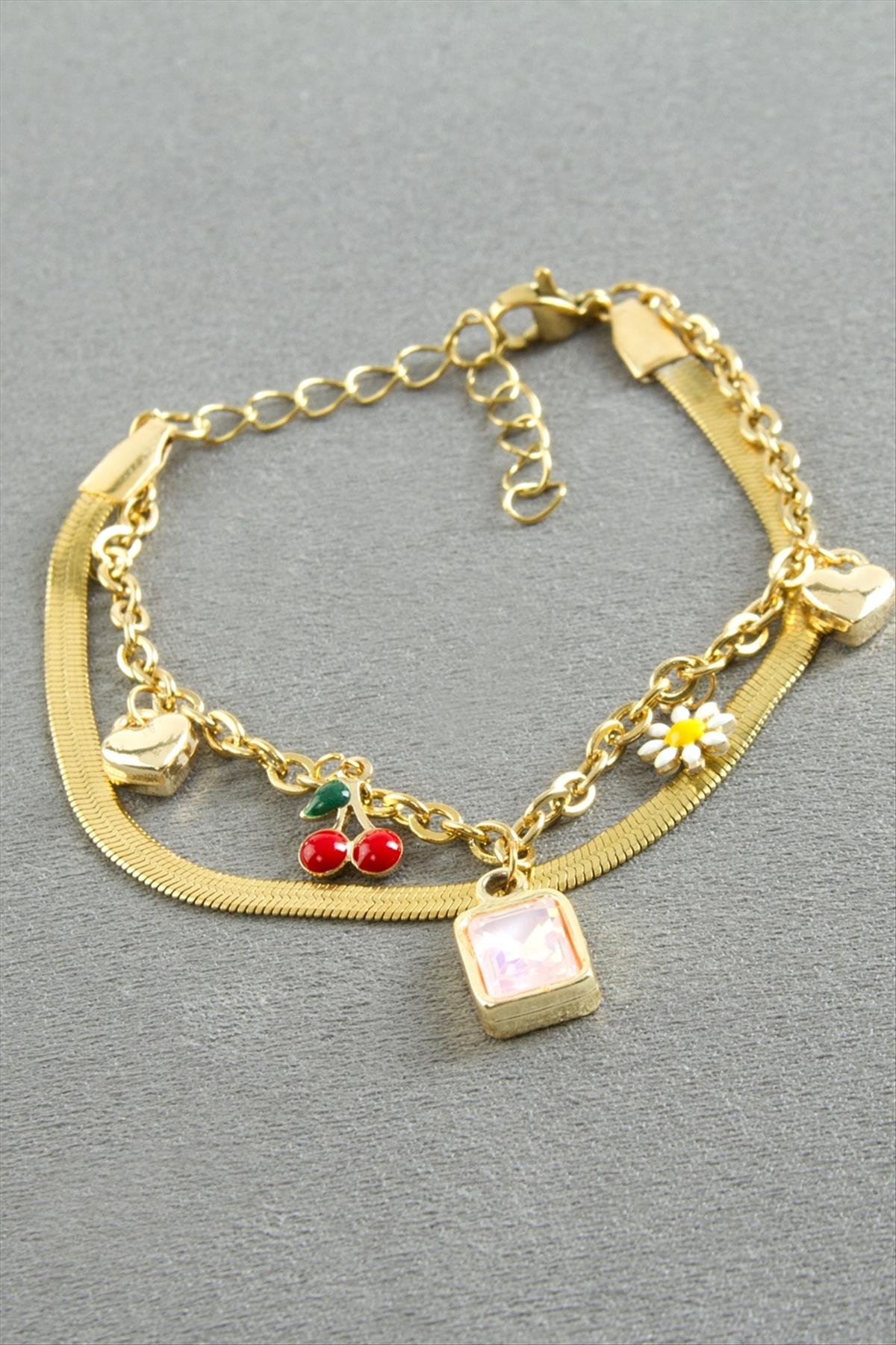 Bileklik; Ürün malzemesi mine boyama ve çeliktir. Bileklik boyu 19 cmdir. Kartlıdır. 1 sınıf kaliteli malzemeden üretilmiştir.