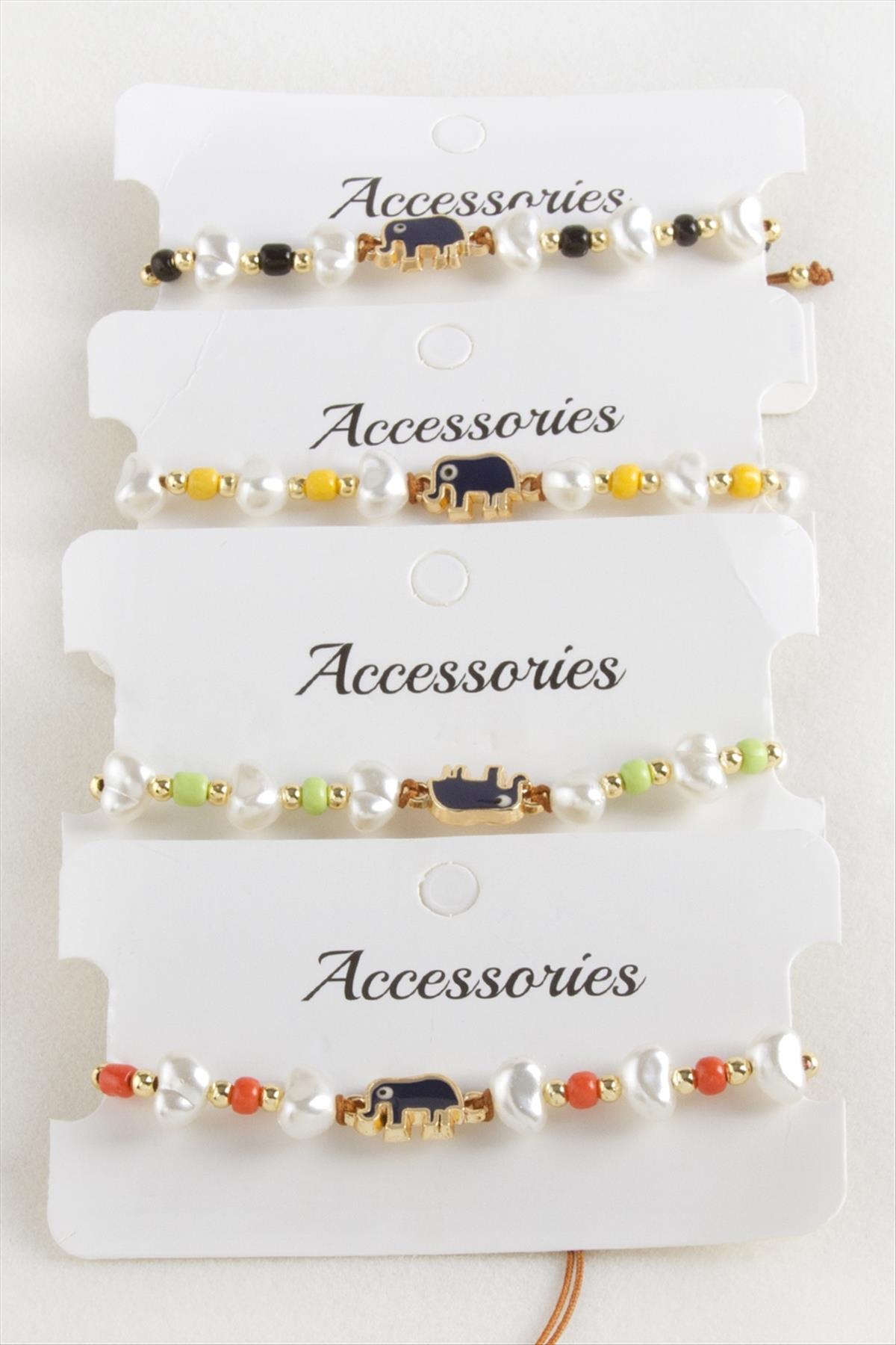 Bileklik; Ürün malzemesi inci, boncuk ve makrome iptir. Ürün arkası asansörlüdür. Bileğe göre ayarlanabilir.