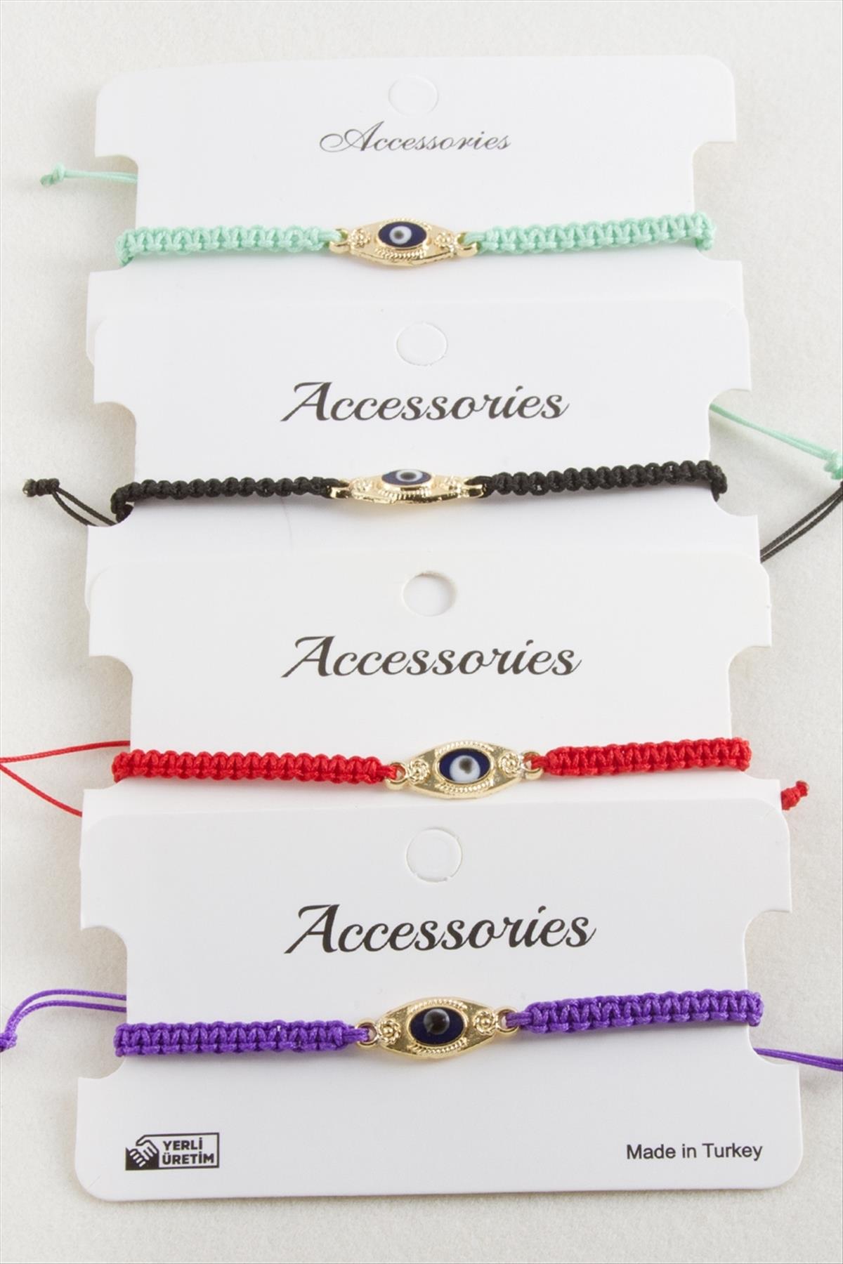 Bileklik; Ürün malzemesi makrome vinlex deri ip ve metaldir. Ürün asansörlüdür. Bileğe göre ayarlamalıdır.