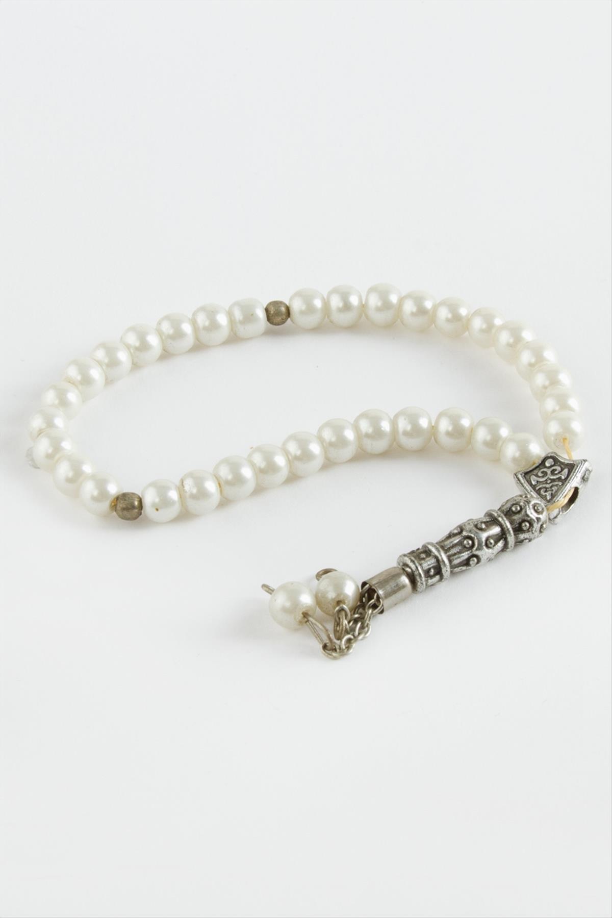 Tesbih; Ürün malzemesi inci cam boncuk ve metaldir. Ürün taş boyu 6 mmdir.