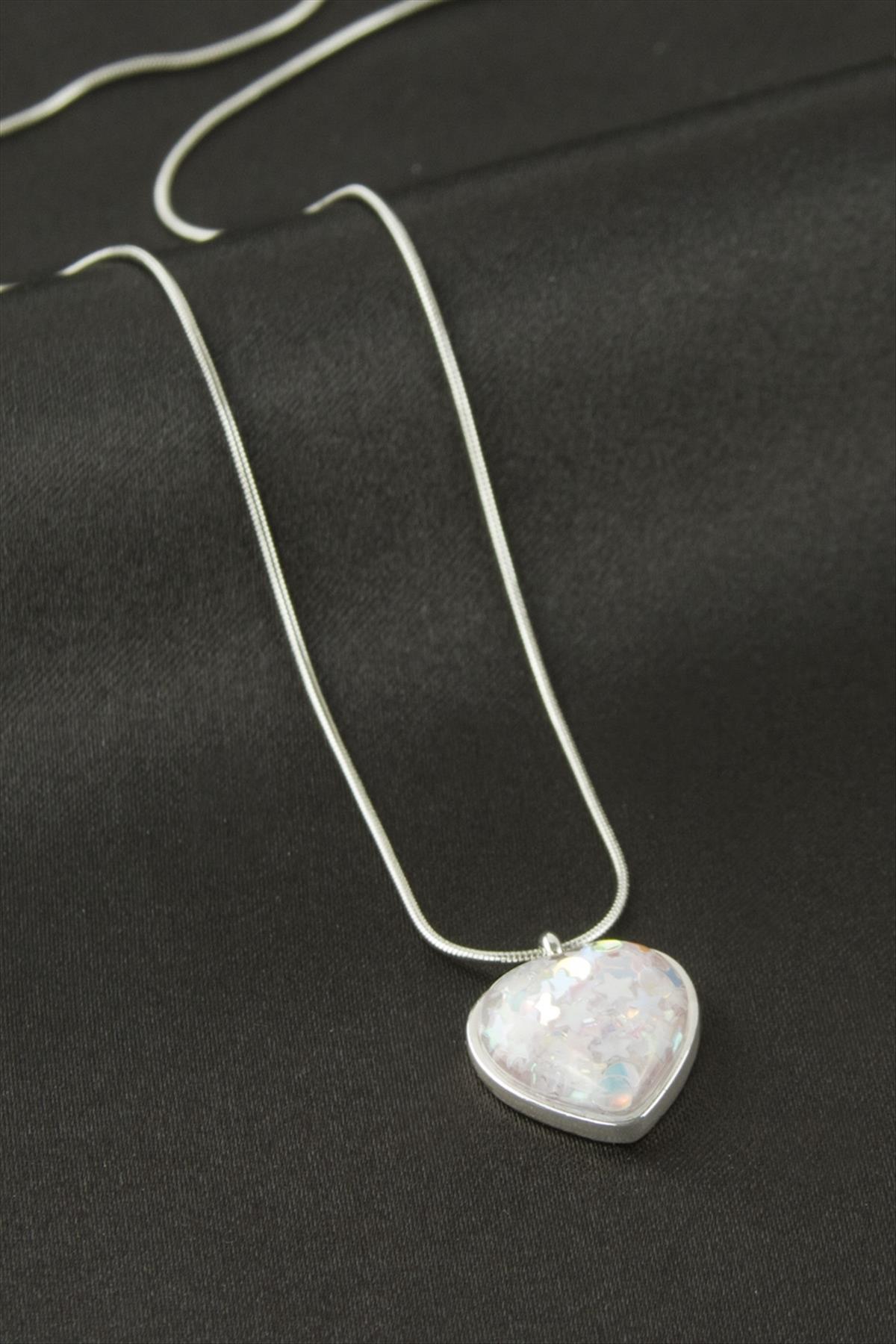 Kolye; Ürün malzemesi zincir bölümü çeliktir. Zincir uzunluğu 45 cm ve ucundaki taş boyu 1,5 cmdir. Kartlıdır.