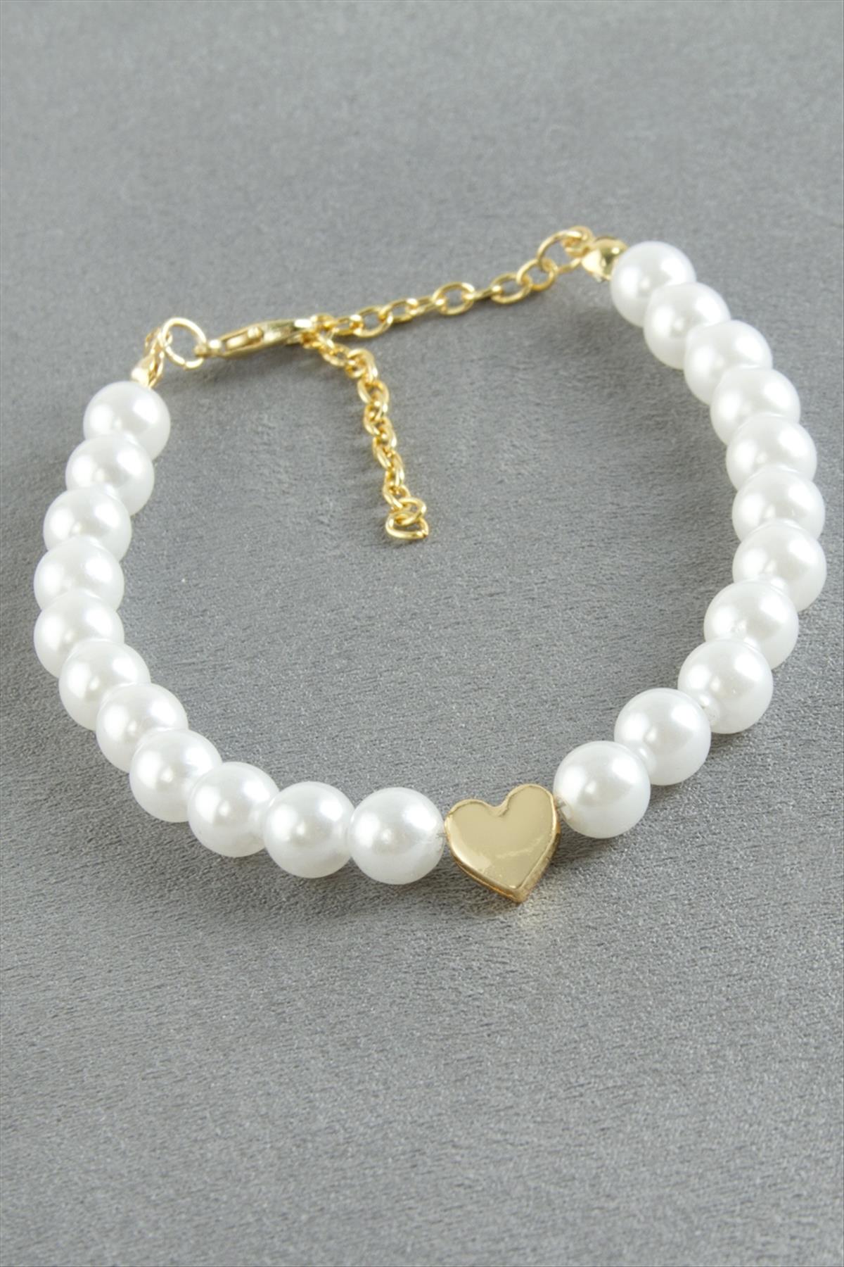 Bileklik; Ürün malzemesi inci, mine boyama ve metaldir. Kartlıdır. Boyu 19 cmdir.