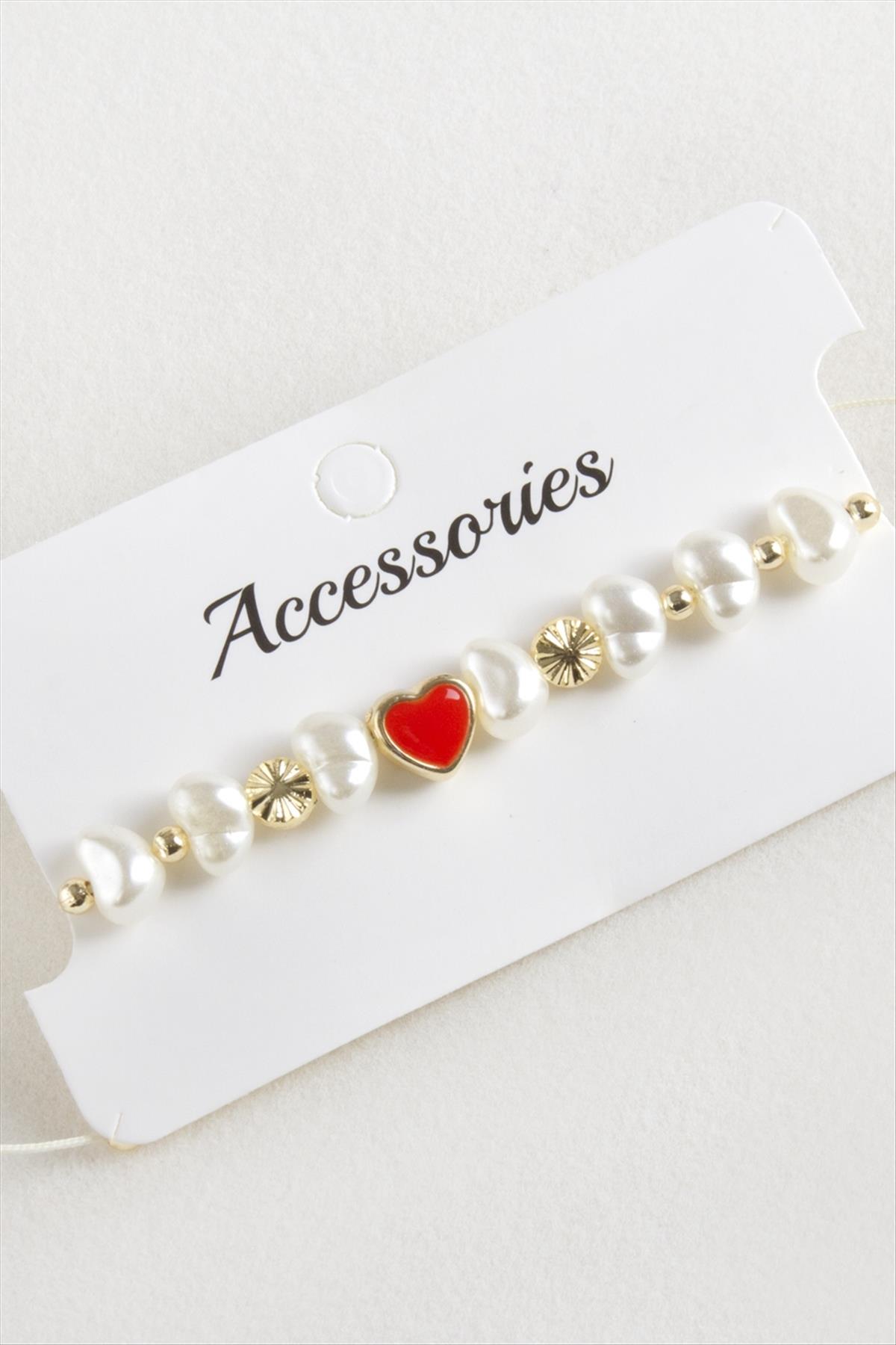 Kalp İnci Boncuk Makrome İp Bileklik