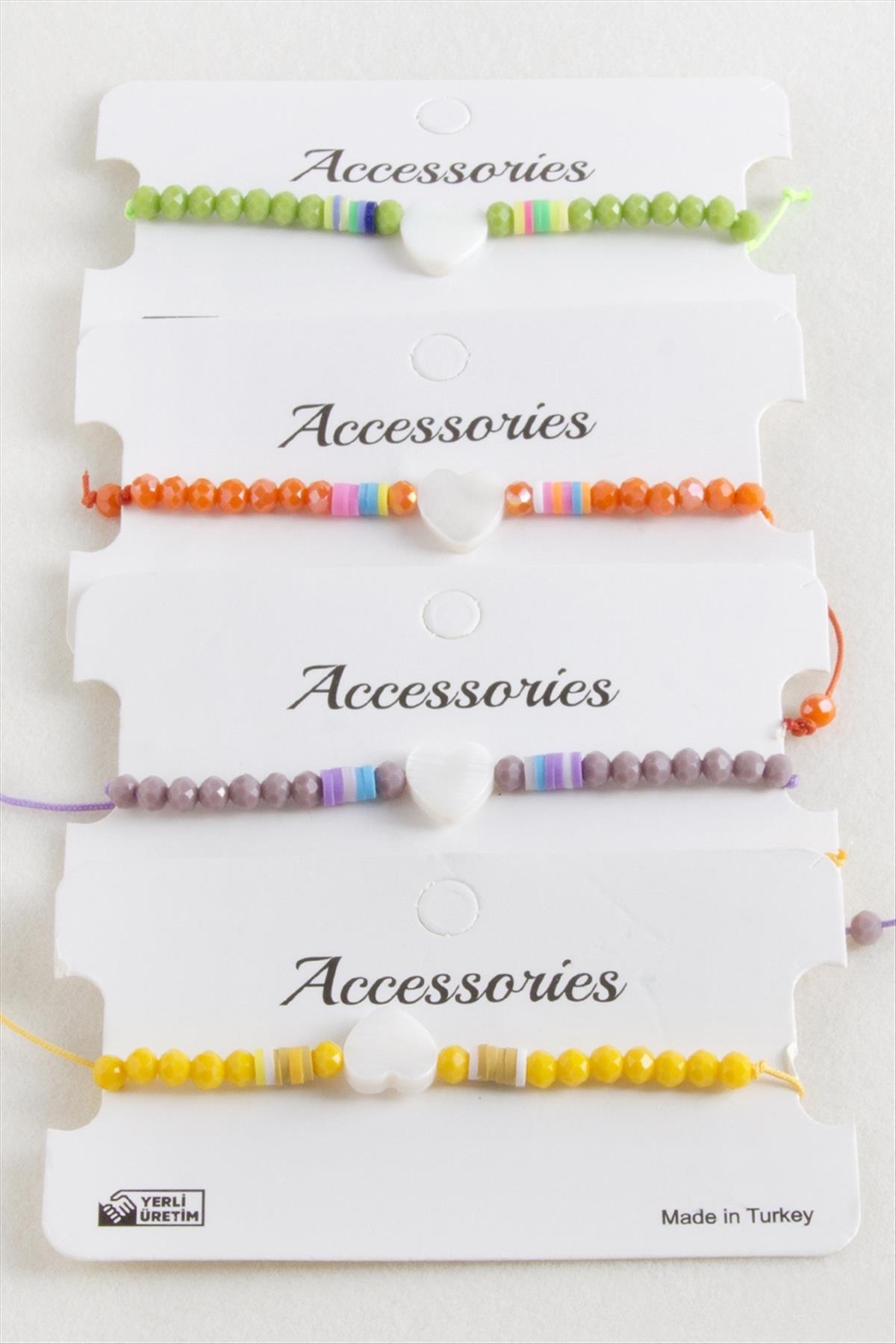 Bileklik; Ürün malzemesi sedef, kristal ve makrome iptir. Ürün arkası asansörlüdür. Bileğe göre ayarlanabilir. Aparat boyu 1 cmdir.