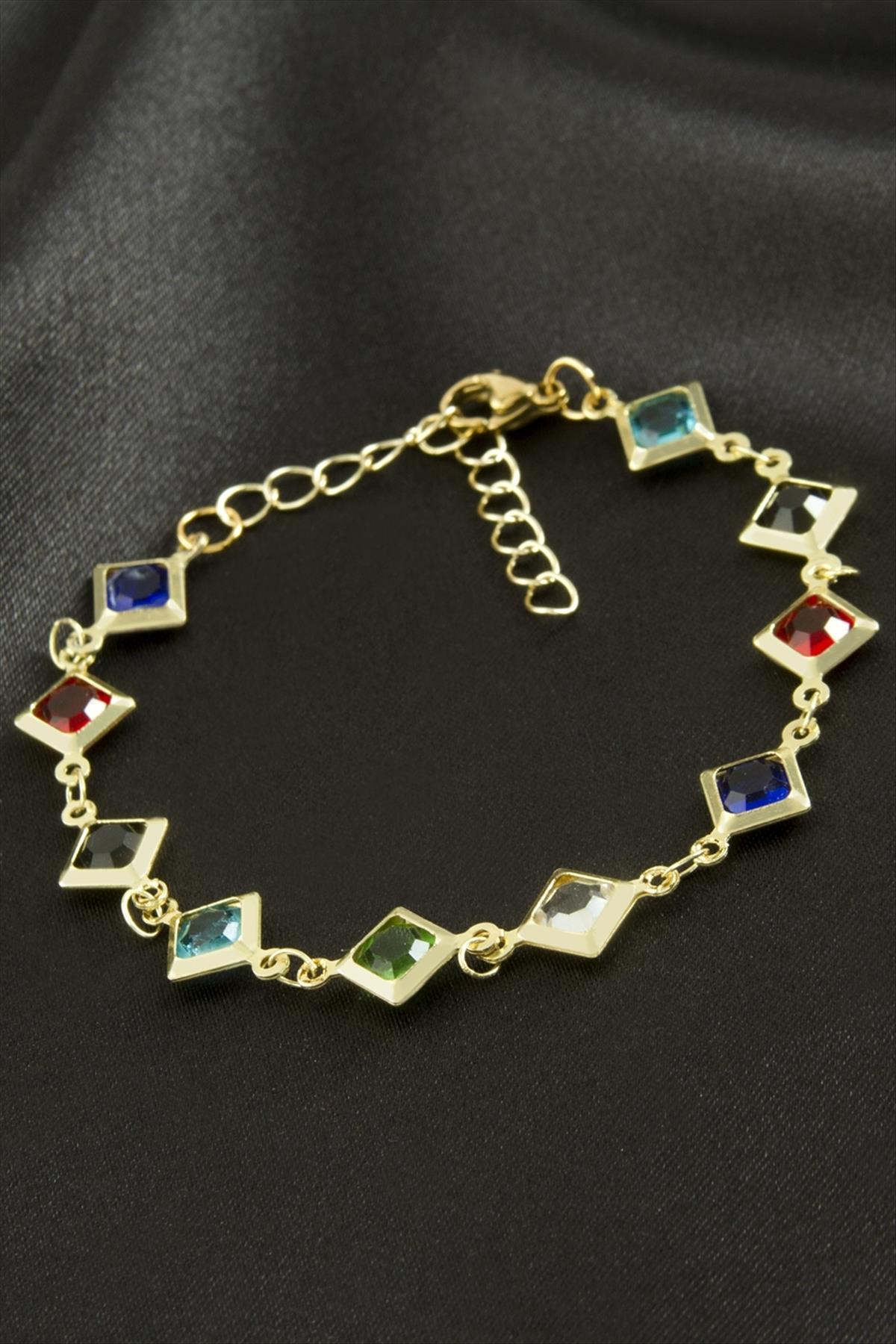 Kare Kristal Taşlı Çelik Bileklik