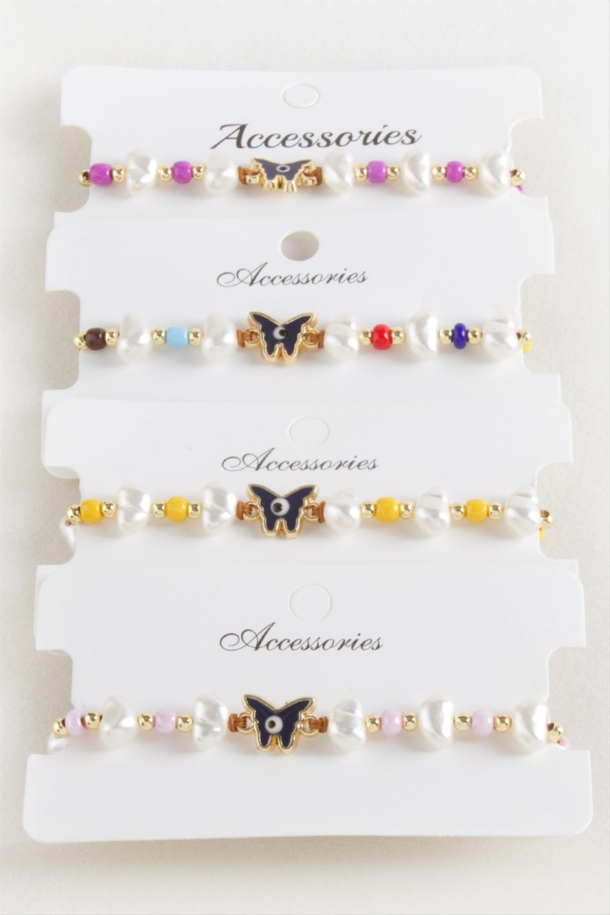 Kelebek Boncuk İnci Makrome İp Bileklik