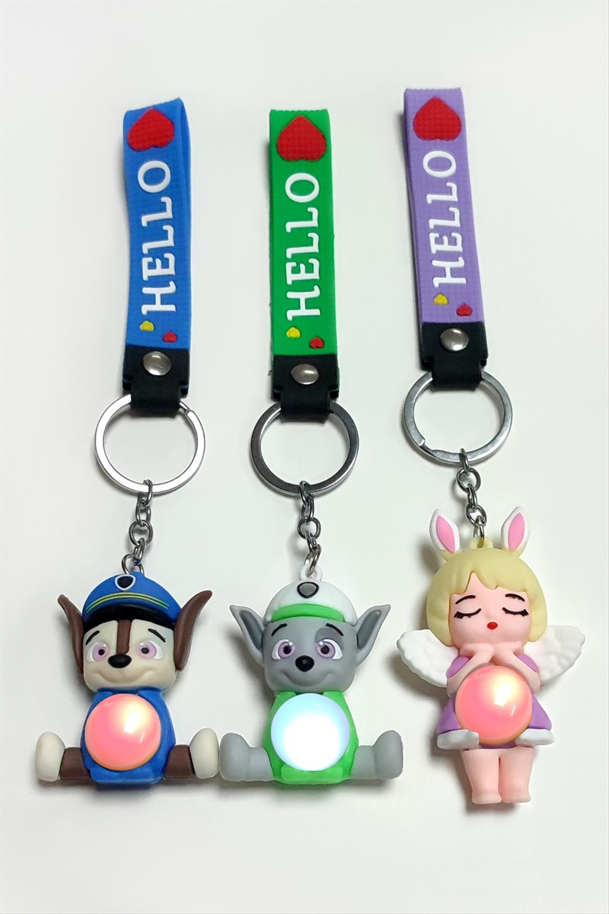 Anahtarlık; Ürün malzemesi silikon ve metaldir. Ürün boyu 18 cmdir. 1 sınıf kaliteli malzemeden üretilmiştir. Ürün ortasındaki yuvarlak beyaz bölgeye hafifçe vurarak renkli ışıklar yanmaktadır. Ürün renkleri ve modelleri asortilidir. Siparişlerinizde karışık olarak gönderilecektir.