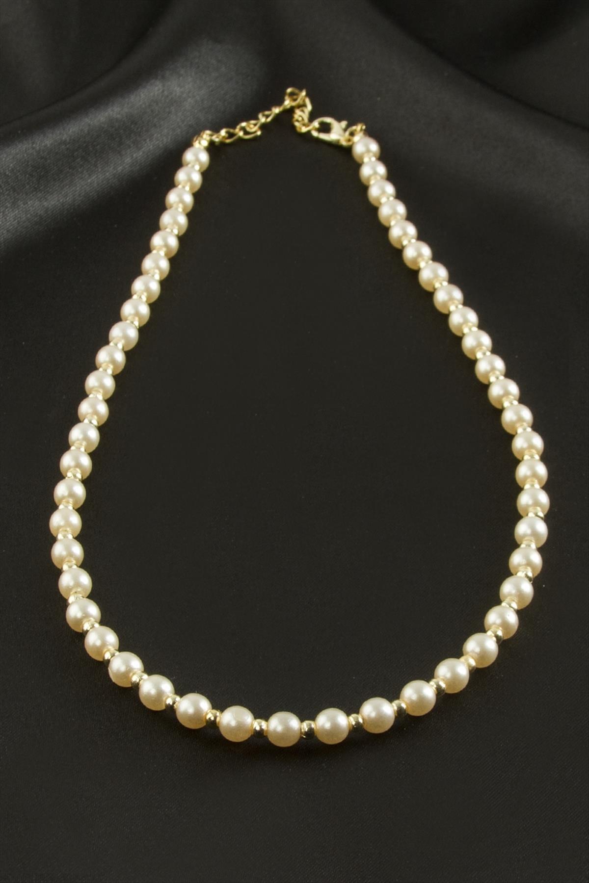 Kolye; Ürün malzemesi metal ve incidir. Ürün boyu 45 cmdir. İnci boyu 6 mmdir.