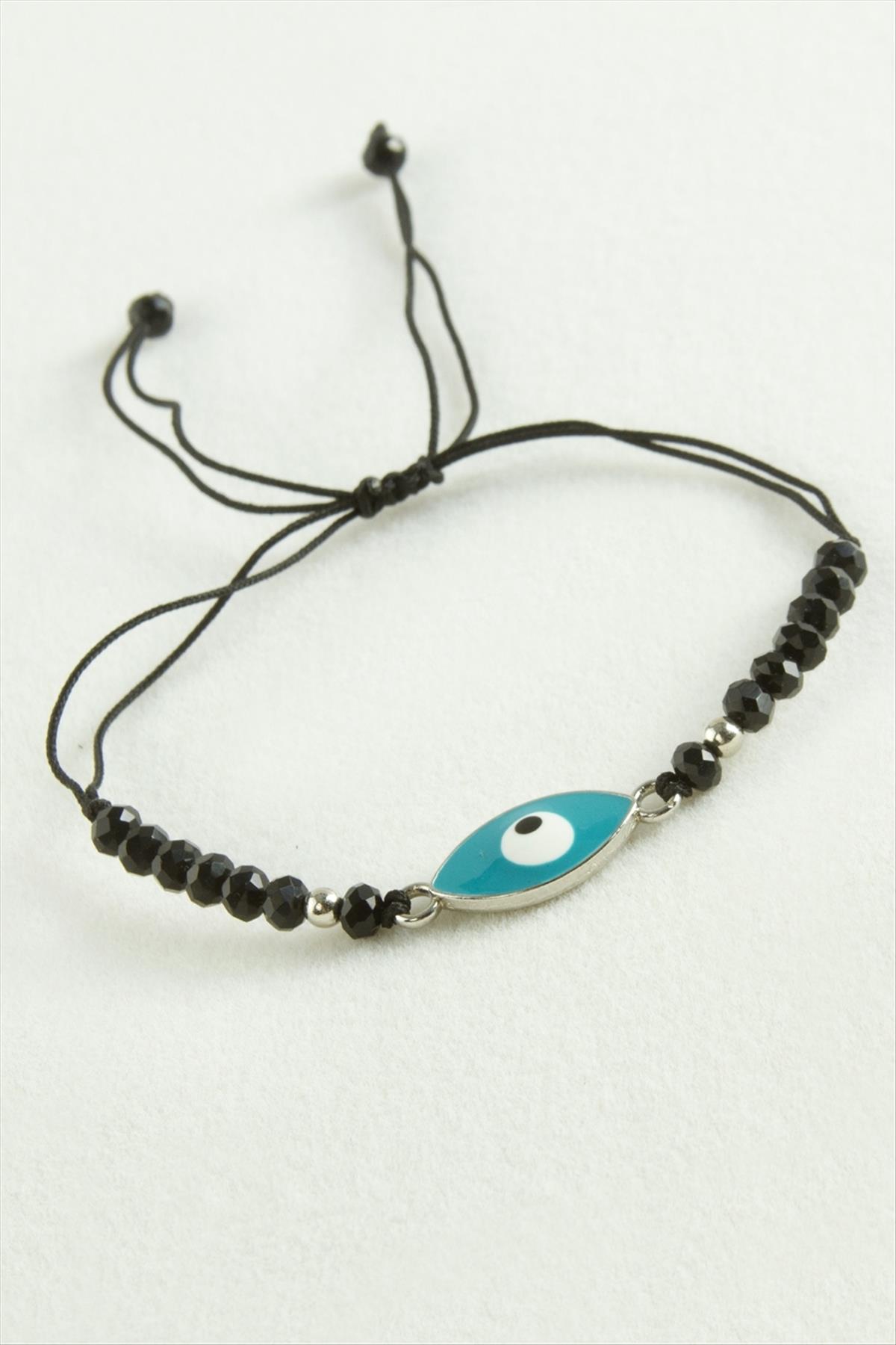 Bileklik; Ürün malzemesi kristal, mine boyama ve makrome iptir. Ürün arkası asansörlüdür. Bileğe göre ayarlanabilir. Aparat boyu 1,5 cmdir. Kartlıdır.