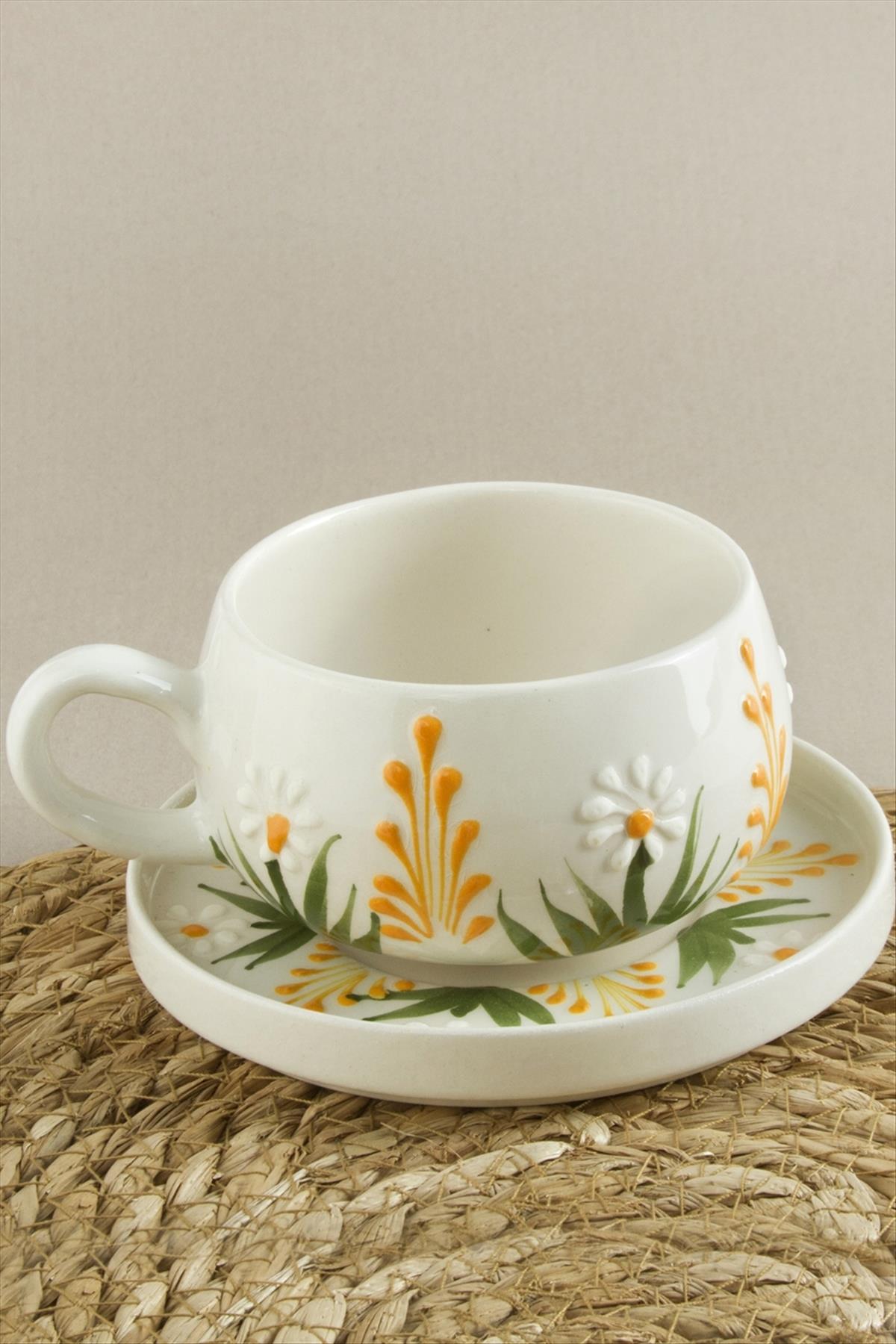 Papatya Desenli Seramik Tabaklı Kupa