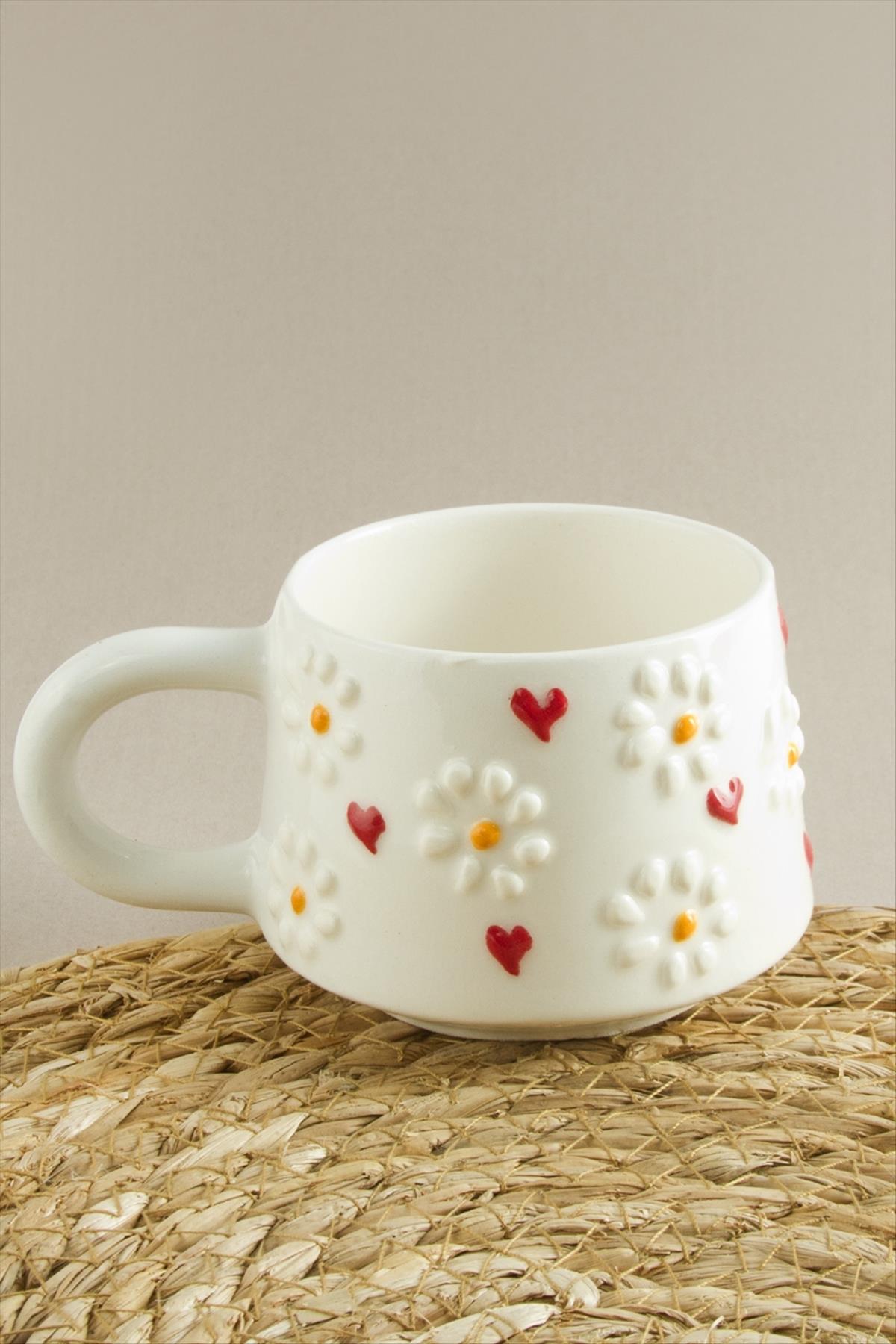 Papatya Kalp Desenli Seramik Kupa
