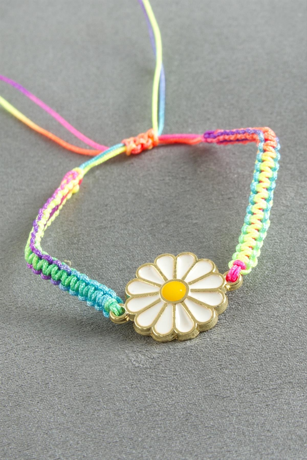 Bileklik; Ürün malzemesi mine boyama ve makrome iptir. Ürün arkası asansörlüdür. Bileğe göre ayarlanabilir. Aparat boyu 2 cmdir. Kartlıdır.
