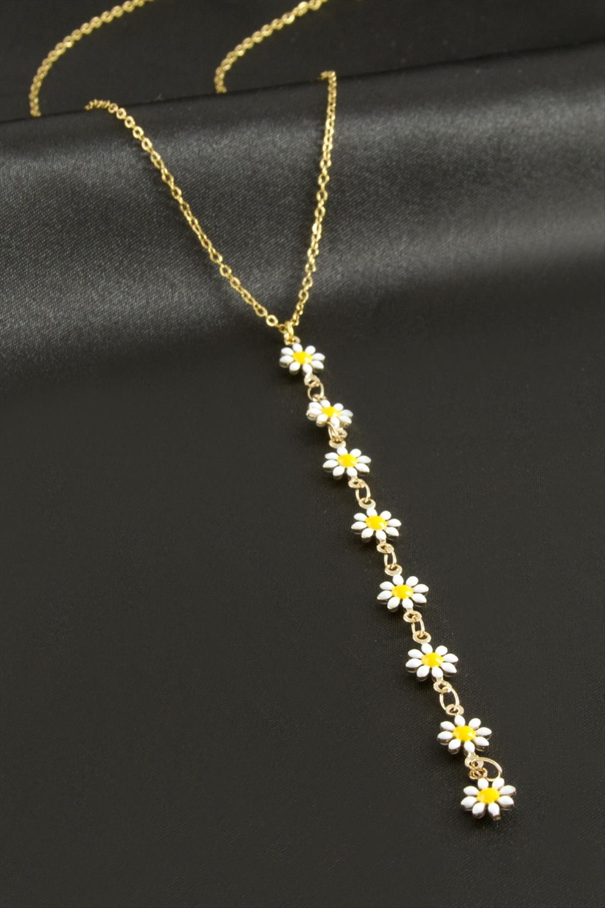 Papatya Mineli Çelik Y Kolye