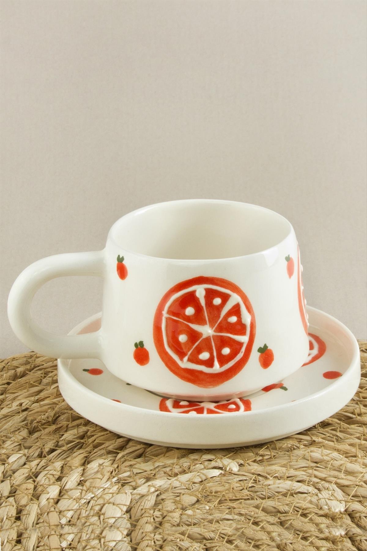 Tabaklı Kupa; Ürün malzemesi seramiktir. Üzerindeki desenler elle çizilip fırınlanmıştır. İçecekleri uzun sür sıcak tutar ve darbelere karşı dayanıklıdır. Ürün kutu içinde tabak ve kupasıyla beraber gönderilecektir. Ürün boyu kupa çapı 8,5 cm ve tabak boyu 12 cmdir.