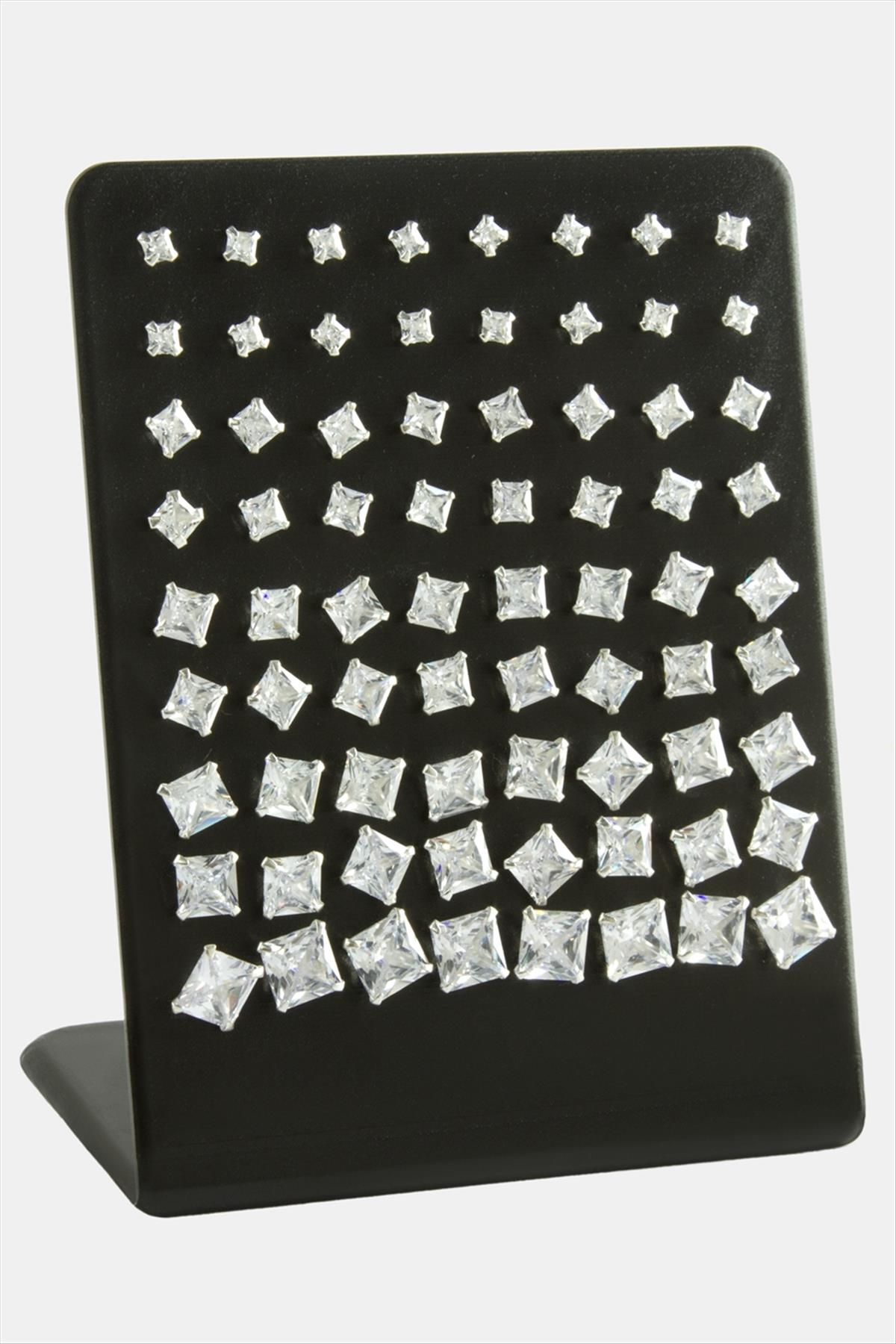 Gümüş Küpe; Ürün malzemesi 925 ayar gümüşten üretilmiştir. Ürün kontrol edilmiş %100 gümüştür. Taş boyları 3-4-5-6-7 mmdir. Ürün standıyla beraber gönderilecektir. 1 stant da 72 adet gümüş küpe gönderilecektir.