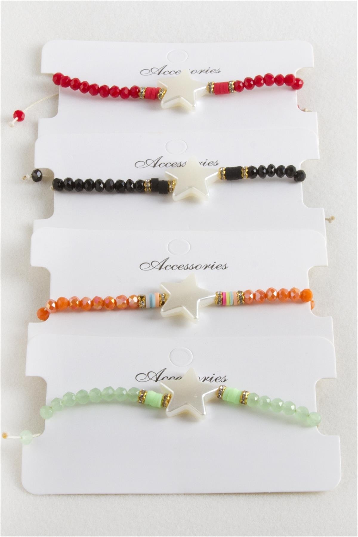 Bileklik; Ürün malzemesi inci, kristal ve makrome iptir. Ürün arkası asansörlüdür. Bileğe göre ayarlanabilir. Aparat boyu 1,5 cmdir.