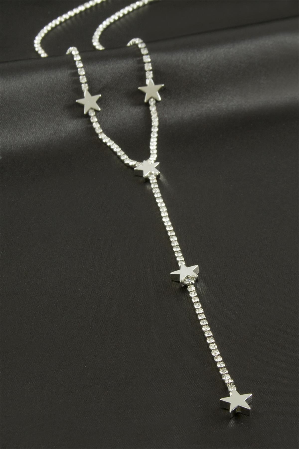 Yıldız Şerit Taşlı Çelik Y Kolye