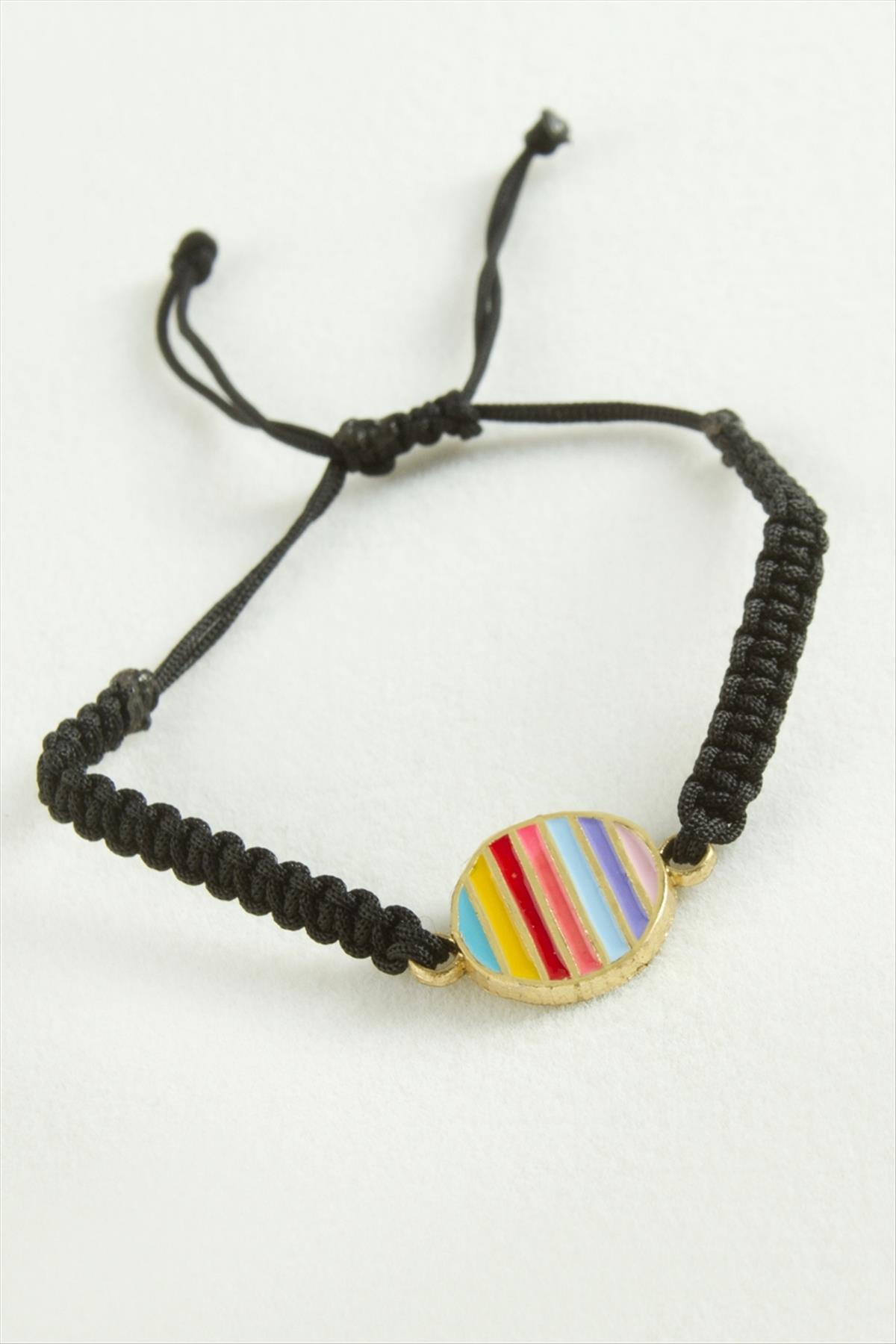 Bileklik; Ürün malzemesi mine boyama ve makrome iptir. Ürün arkası asansörlüdür. Bileğe göre ayarlanabilir. Aparat boyu 1 cmdir. Kartlıdır.